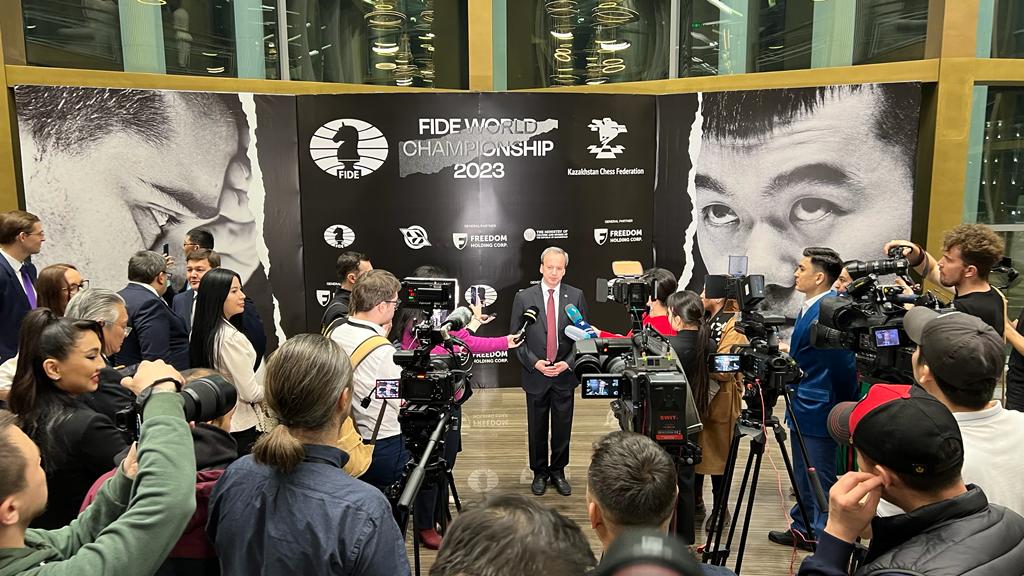 The 2023 World Chess Championship match opened today (April 7th) in Astana, Kazakhstan with the Opening Ceremonies and drawing of colors. The match between Ian Nepomniachtchi and Ding Liren will determine who will hold the official title of World Champion. The deserving winner will be known throughout the world as the face of chess despite the political shadow stemming from the raging war in Ukraine.